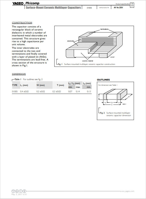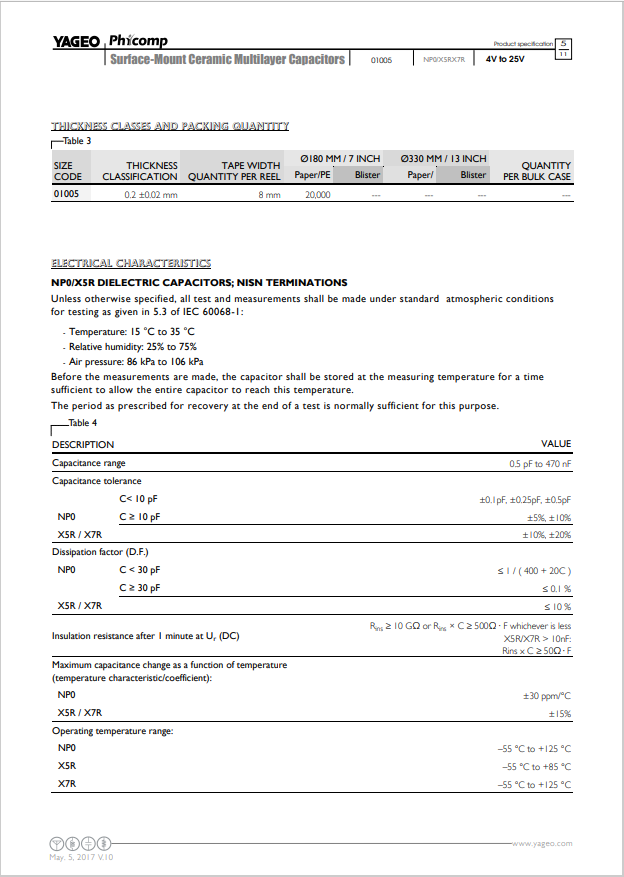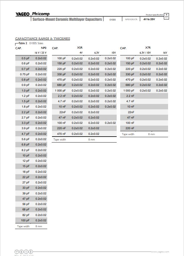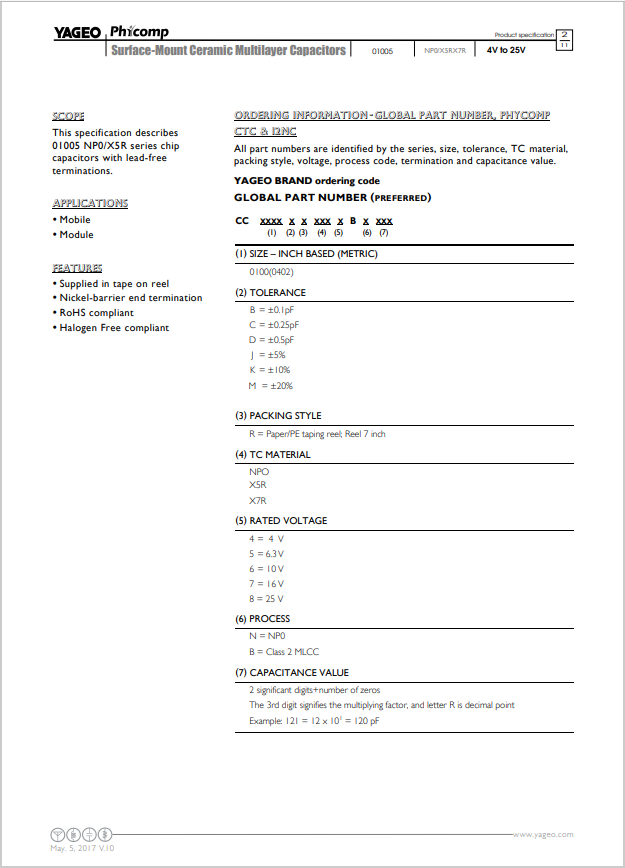 yageo(國巨)電容規格書大致預覽圖如下