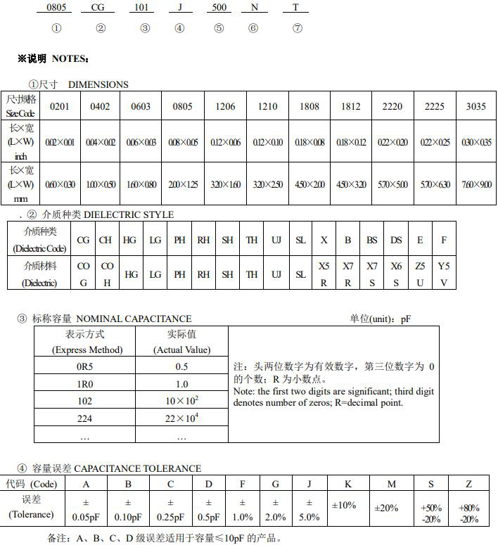 風華貼片電容型號規格表示圖如下