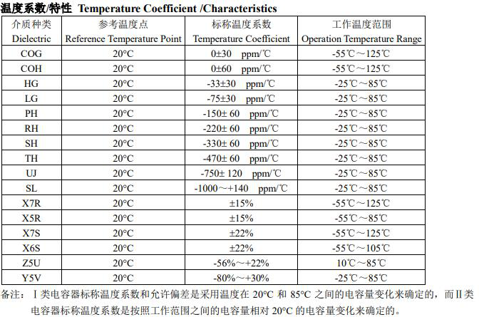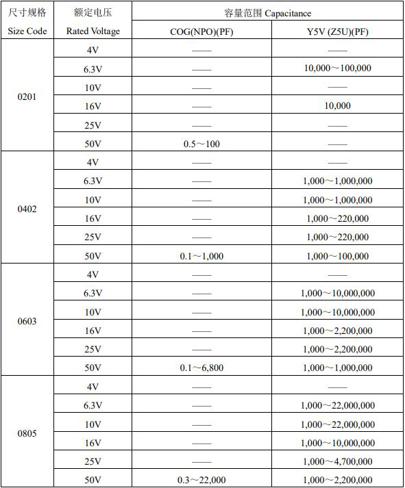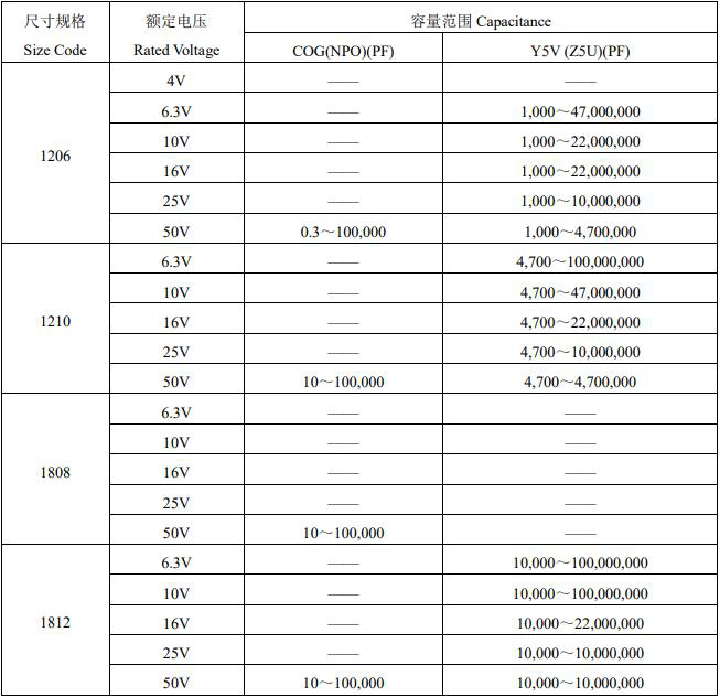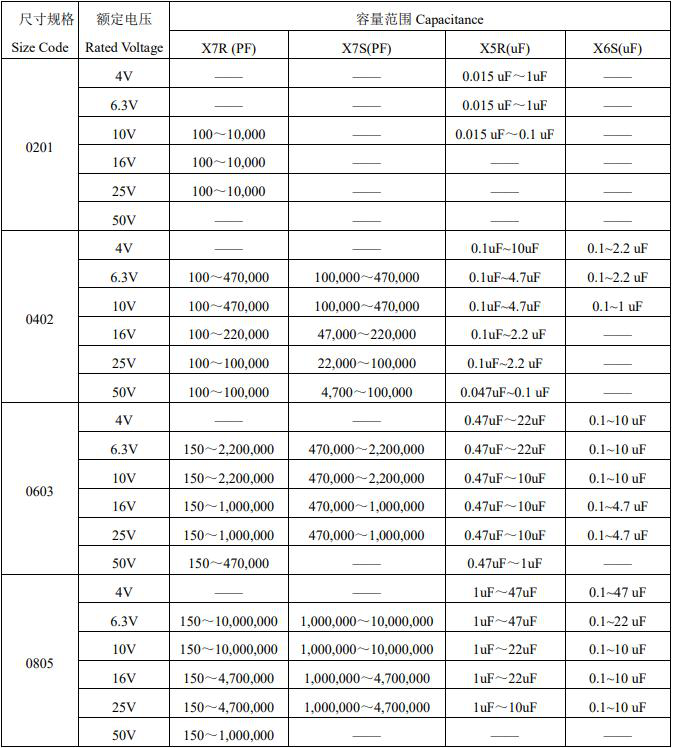 風華貼片電容參數選購圖表如下