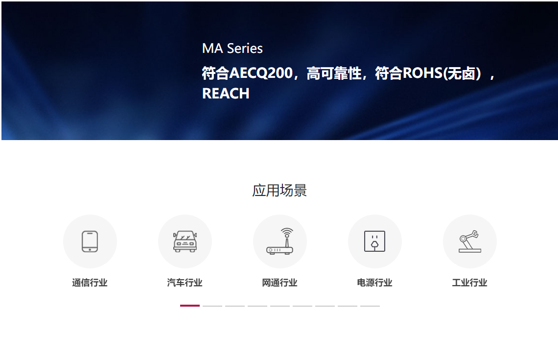產品簡介:MA Series 符合AECQ200,高可靠性,符合ROHS(無鹵)REACH
