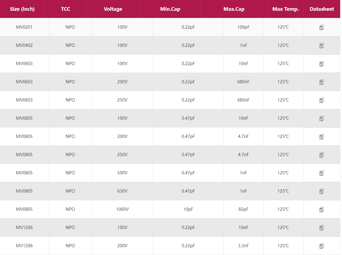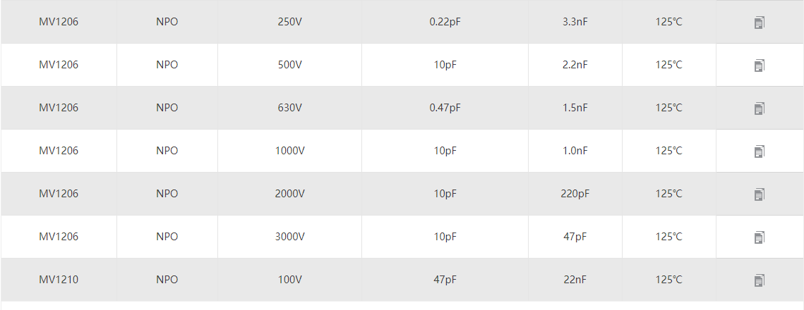 信維中高壓電容 產品型號:0201 0402 0603 0805 1206 1210