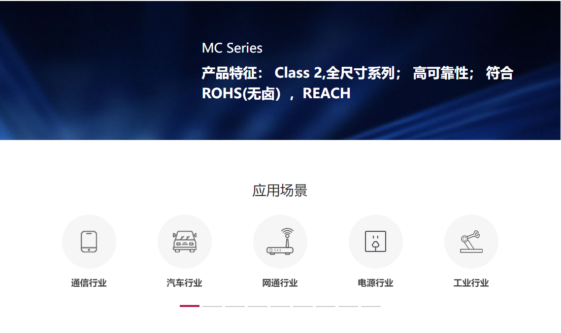 產品特征:Class 2,全尺寸系列; 高可靠性; 符合ROHS(無鹵),REACH